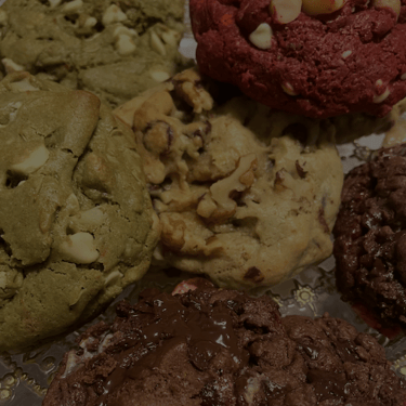 Freshly baked cookies — soft, chewy, and made with the finest ingredients. Available in 10 flavors, perfect for sharing or enjoying with coffee.