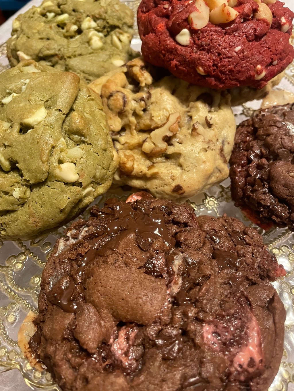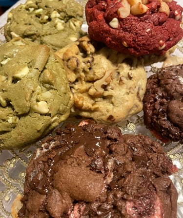 Freshly baked cookies — soft, chewy, and made with the finest ingredients. Available in 10 flavors, perfect for sharing or enjoying with coffee.